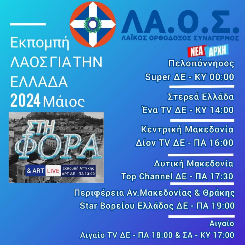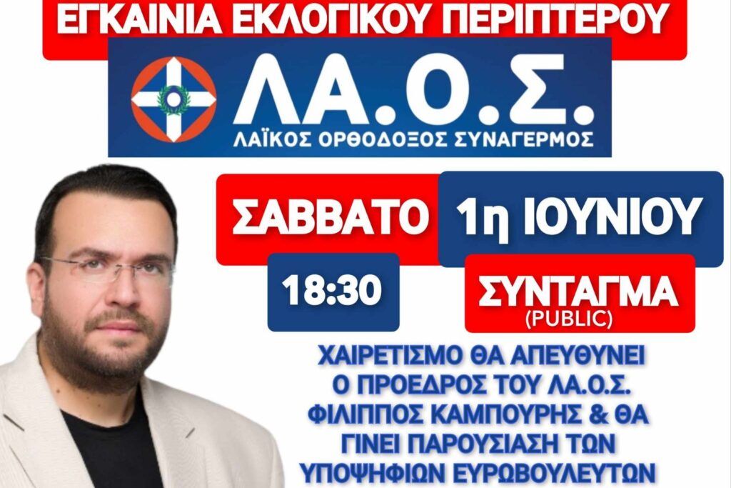 5 χρόνια μετά την τελευταία εκλογική μάχη που έδωσε το ΛΑ.Ο.Σ. το Μάιο 2019, επανερχόμαστε δυναμικά με νέο Πρόεδρο το ΦΙΛΙΠΠΟ ΚΑΜΠΟΥΡΗ & διεκδικούμε την ψήφο των Ελλήνων στις προσεχείς ευρωεκλογές της 9ης Ιουνίου 2024!