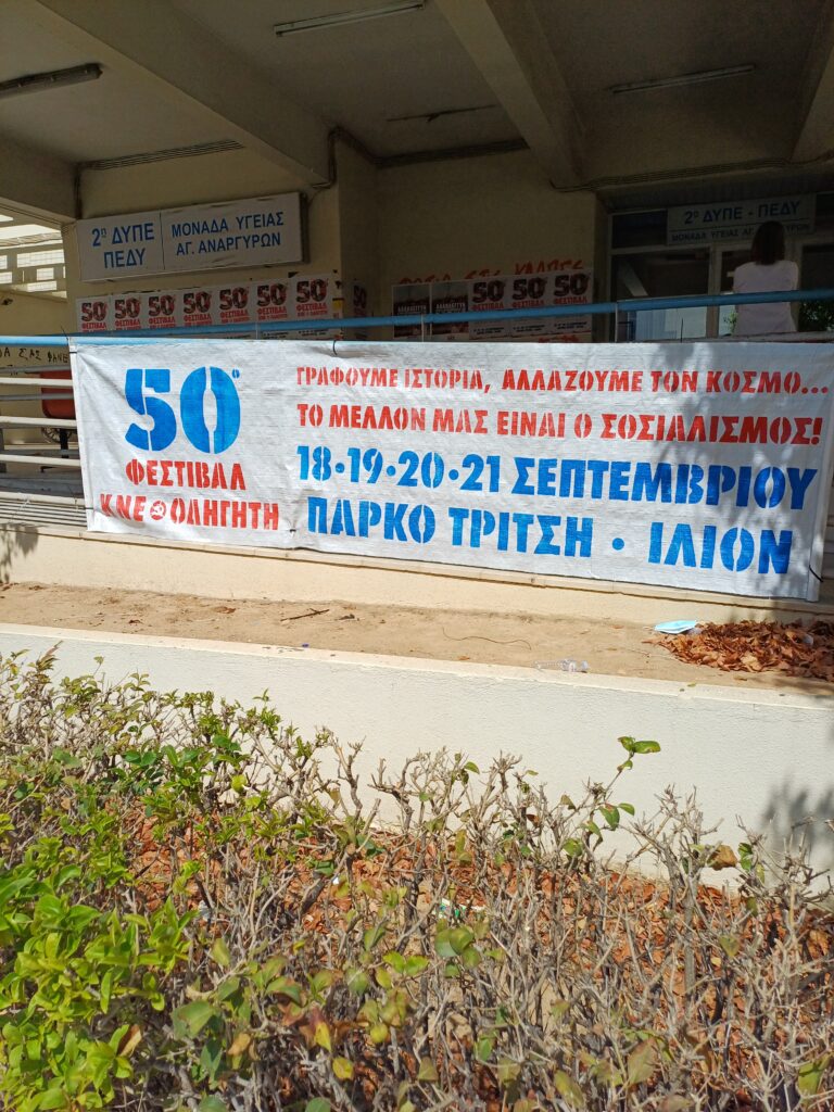 Είναι δυνατόν ένα δημόσιο κτίριο να καταλαμβάνεται πλήρως από ένα πολιτικό κόμμα; Μήπως ο ΕΦΚΑ έχει παραχωρήσει ως διαφημιστικό χώρο το κτίριό του, ώστε να προβληθεί η εκδήλωση της ΚΝΕ, έναντι κάποιου αντιτίμου; Να το κάνουμε κι εμείς αν είναι έτσι..